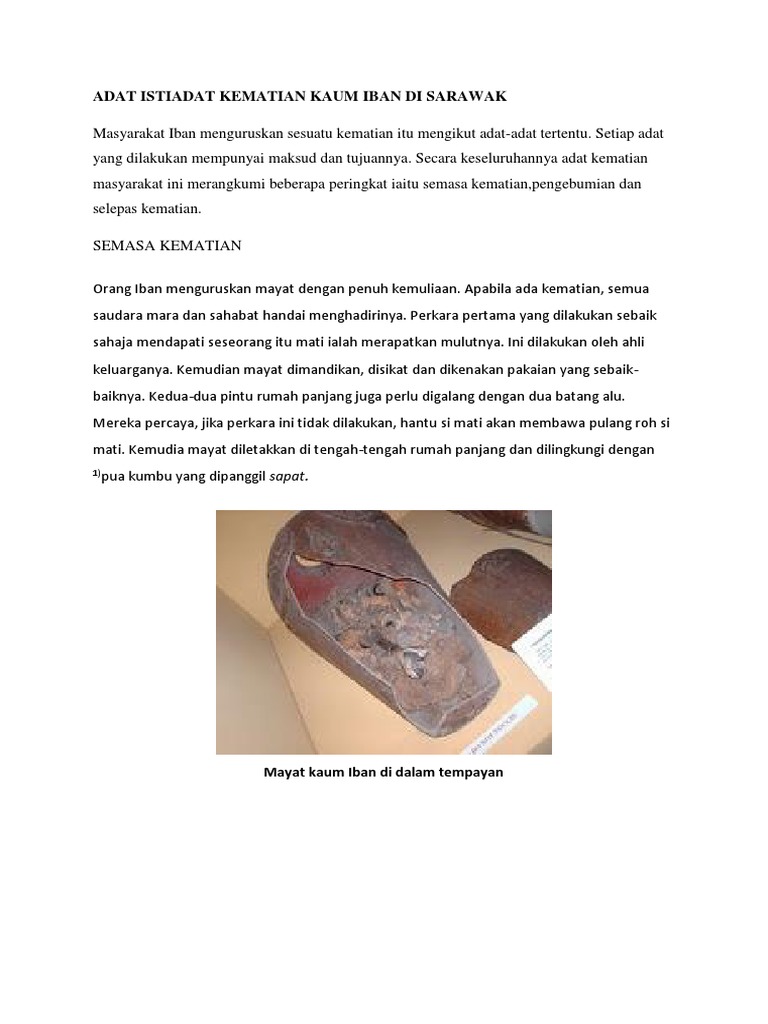 Adat kematian kaum iban. Secara keseluruhannya adat kematian masyarakat ini merangkumi peringkat peringkat berikut. Adat resam kaum ibansecara tradisi kehidupan masyarakat iban diatur oleh adat mereka yang amat rapat berkait dengan sostem pertanian berhuma bumai padi. Hairi hedeir 33 114 views. Di atas kepercayaan kepada semangat padi maka pelbagai perayaan gawai dilakukan pada masa tertentu disepanjang tahun gawai diketuai oleh beberapa ketua tertentu bergantung kepada jenis dan tujuannya.