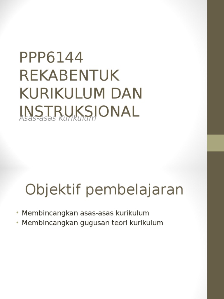 Enam tahun pendidikan asas di sekolah. Pembangun kurikulum perlu mengkaji a teori teori berkaitan dengan kurikulum b falsafah pembentukan kurikulum c kriteria pembentukan kurikulum 2. Sesuatu institusi pendidikan perlu menentukan matlamat yg ingin dicapai serta bagaimana cara utk memastikan matlamat tersebut tercapai isu isu berkaitan dgn persekolahan. Di malaysia beberapa perubahan baru telah berlaku dalam arena pendidikan.