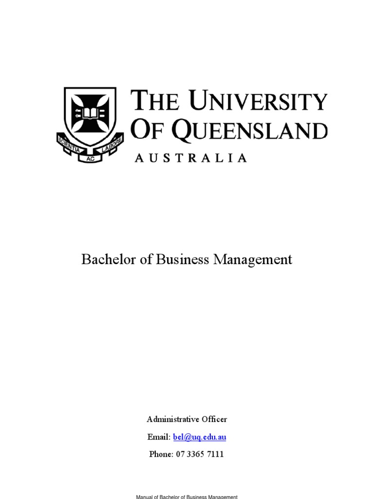 Bachelor of business management bbusman course list show information for. It is designed to equip you with the skills and self confidence to effectively manage and adapt to a wide range of competitive and constantly changing business environments. Bachelor of business management it is essential to plan your program of study so that prerequisite courses are completed prior to enrolment in advanced courses. The university of queensland.