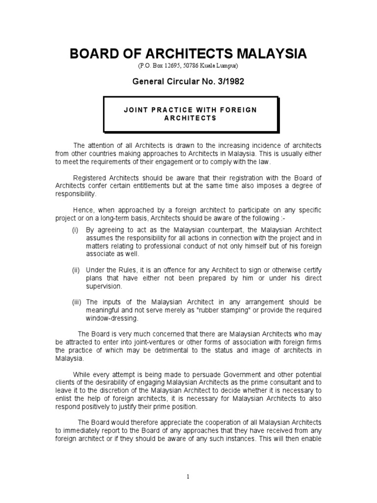 Pertubuhan akitek malaysia pam malaysian institute of architects is the national professional institute representing architects in malaysia. Implemented on 15th february 2015 new amendments under the architects act 1967 act 117 were introduced for governing interior designers. Architects scale of minimum fees rules 2010. The board of architects malaysia is a statutory authority responsible for the enforcement of the architects act 1967.