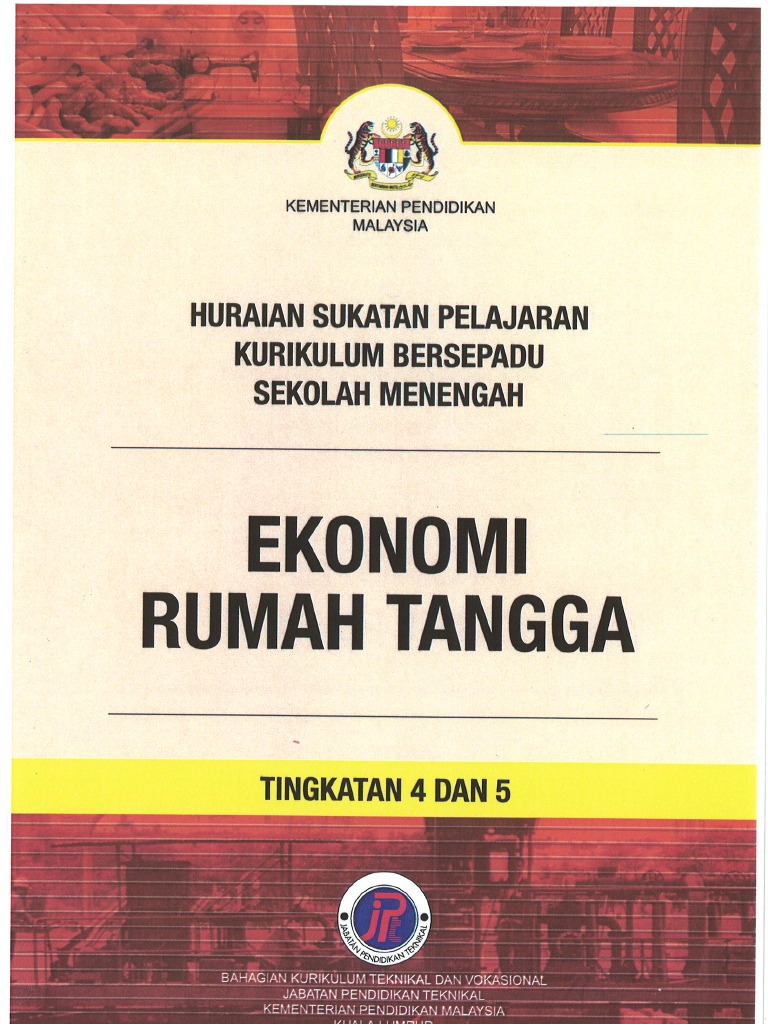 Buku teks ekonomi rumah tangga tingkatan 4. Bidang pengajian ini berbentuk gunaan dan developmental. Ruillah tangga dan nomos m k imum. Ekonomi rumah tangga ert ialah satu mata pelajaran elektif di sekolah menengah atas dalam kurikulum bersepadu sekolah menengah. Laman ini diwujudkan adalah bertujuan untuk memberi maklumat yang terperinci berkenaan tajuk tajuk yang terkandung dalam.
