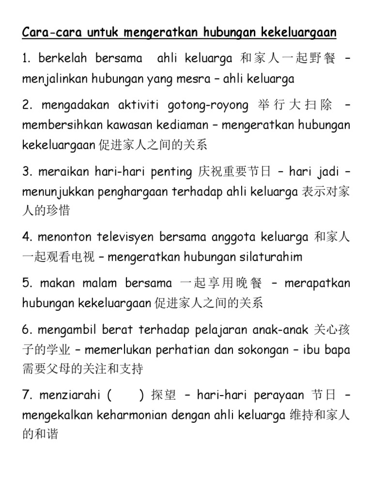 Kssr bm bina ayat cara mengeratkan ikatan kekeluargaan 1. Tidak semestinya perlu ke destinasi yang jauh percutian pendek ke destinasi pelancongan yang berdekatan juga sudah mampu menggembirakan anak anak dan merupakan antara aktiviti yang amat dinanti dan disukai oleh mereka. Ai ling dan keluarganya melakukan aktiviti riadah bersama sama supaya hubungan kekeluargaan dapat dieratkan. Cara cara mempererat hubungan kekeluargaan keluarga ialah institusi yang terdiri daripada bapa ibu anak anak saudara mara dan sebagainya.