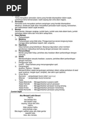Ciri ciri sajak rangkap. B rangkap pertama mempunyai sepuluh baris dan rangkap kedua mempunyai lapan baris. Bentuk dan ciri ciri sajak a terdiri daripada tiga rangkap. Bentuk dan ciri ciri sajak a terdiri daripada dua rangkap. C bilangan katanya tiga hingga sembilan patah kata.