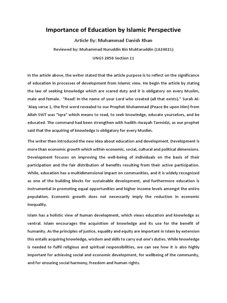 One of the privileges bestowed by allah to man is the ability to learn and acquire knowledge. Muslims believe religious education comes prior to any teaching of citizenship. Historically this is rooted and integrated with knowledge and education. The concept of education in islam from the terminological and philosophical point of view al attas states recognition and acknowledgement progressively instilled into man of the proper places of things in the order of creation such that it leads to the recognition and acknowledgement of the proper place of god in the order of being and existence.