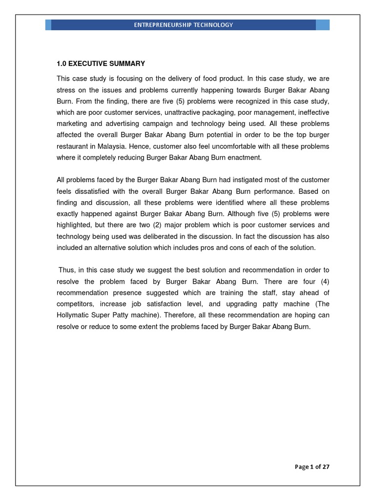 A well written case study must end with an appropriate final section in which you should summarize the key takeaways that you want others to remember about you and your work. 11 may 2018 contents page no name uitm id no. Entrepreneurship yume sdn bhd entreprenuership ent 300. Sir firdaus submission date.