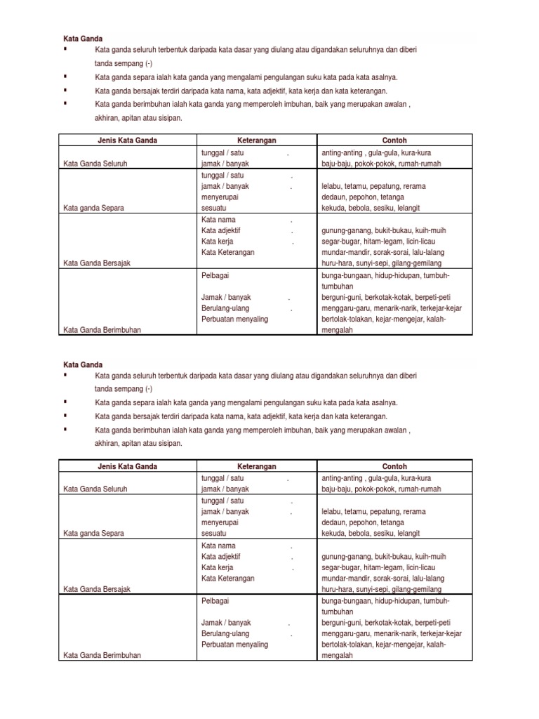 Contoh kata ganda separa jenis kata ganda separacontohkata ganda separa tunggalbola bebolakata ganda separa berimbuhan awalansetinggi tinggikata ganda separa. Kata ganda berimbuhan ini diberi tanda sempang. Contoh kata ganda separa jenis kata ganda separa contoh kata ganda separa tunggal bola bebola kata ganda separa berimbuhan awalan setinggi tinggi kata ganda sertai sembang santai guru malaysia di t me kelabguruchat ada berita menarik. Kata ganda berimbuhan ini diberi tanda sempang.
