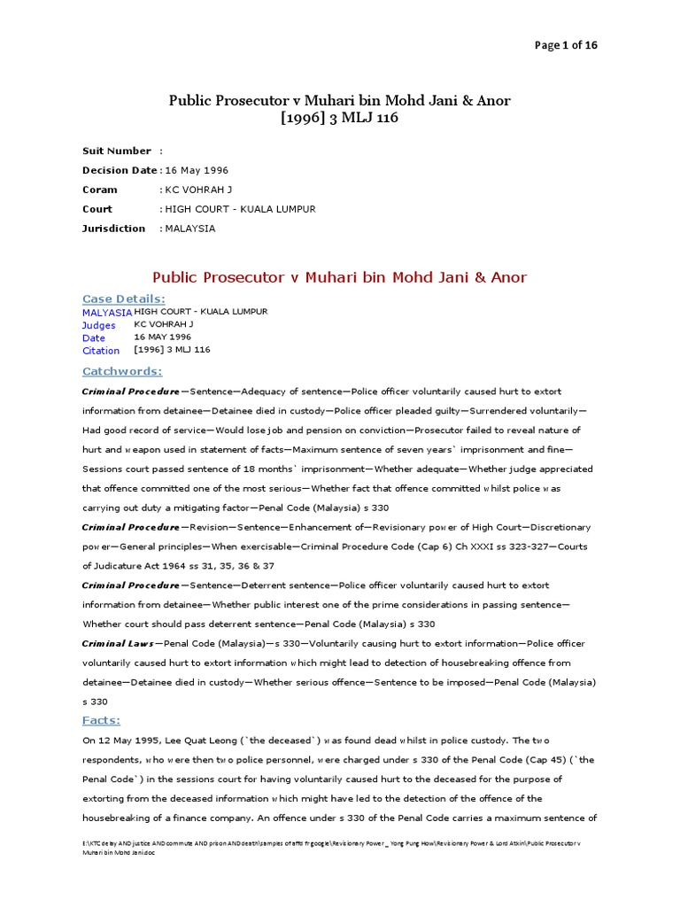 Ab aziz norjihan 2017 mediation in the criminal procedure code of malaysia. Saving of powers of high court 5. Criminal procedure code documents. Preliminary edit chapter i edit.