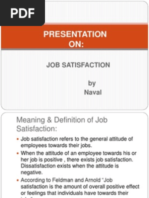 Definition of job satisfaction pdf. Job satisfaction is one of the most researched variables in the area of workplace psychology and has been associated with numerous psychosocial issues ranging from leadership to job design this article seeks to outline the key definitions relating to job satisfaction the main theories associated with explaining job satisfaction as well as the types of and issues. Definition on job satisfaction can be givven the nature and importance of work as a universal human activity must be considered. However the two most common definitions describe job satisfaction as. The delightful emotional state resulting from the appraisal of one s job as achieving or facilitating the achievement of one s job values and the extent to which.