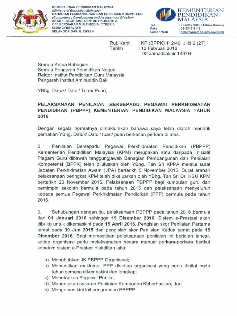 Share to twitter share to facebook share to pinterest. Bahkan jika salah satu unsur saja dapat kita capai maka maslahat tambahan dari pemerintah berpeluang kita terima. Jika sebelum ini penilaian guru menggunakan sistem laporan nilaian prestasi tahunan lnpt kini guru akan dinilai menggunakan instrumen penilaian bersepadu pegawai perkhidmatan pendidikan pbppp yang mana telah dilaksanakan sepenuhnya bermula 2016. 3 penasihat dato haji mahmud bin karim pengarah bahagian pendidikan guru sidang editor task force inisiatif 10 pelaksanaan piagam guru.