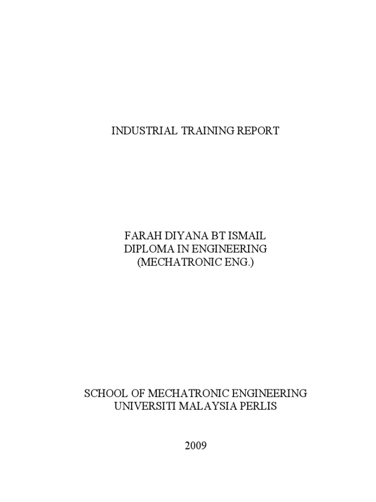 Example of final report industrial training unimap. Contoh format laporan latihan industri example of industrial training report format assalamualaikum. The document contains both technical and social skills and experiences that were practiced during the internship period. Training duration 3 month 1 6 may 2016 15 august 2016 name of internal supervisor ms. Which must be submitted to respected lecturer together with programme final report at the end of the incubator programme.