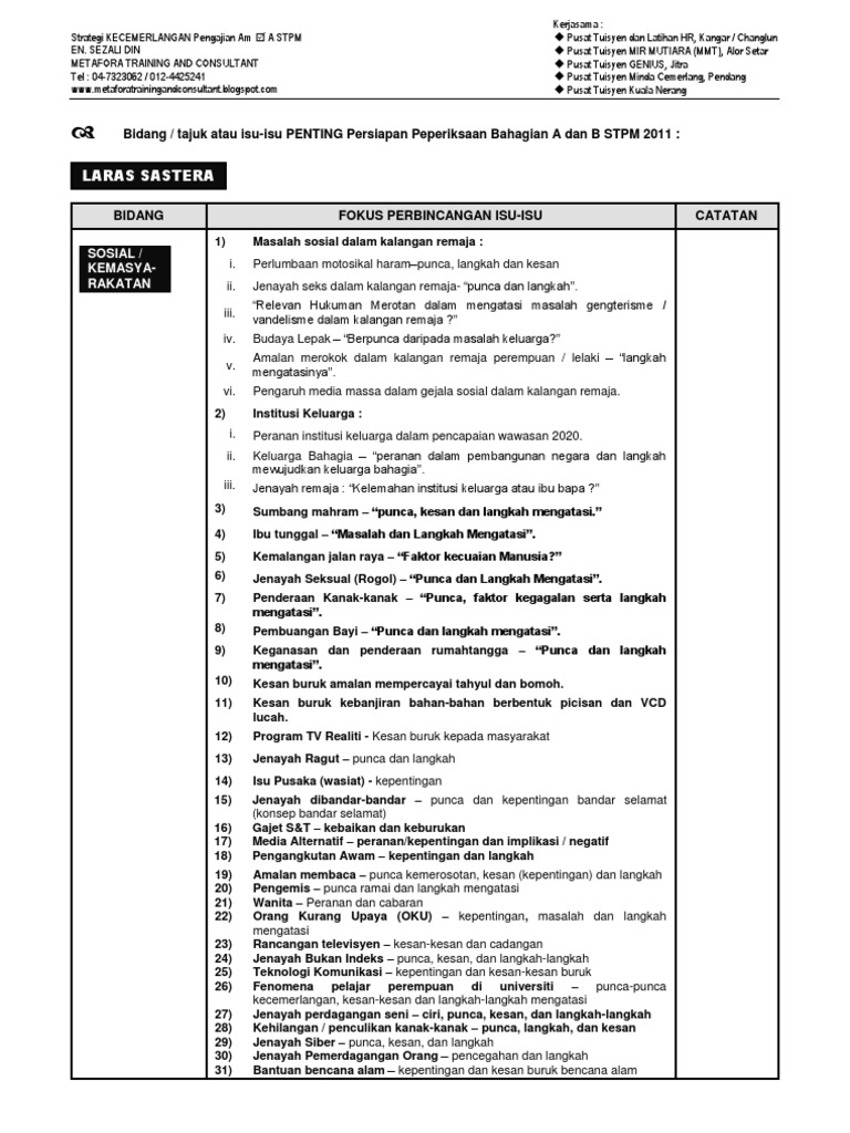 Langkah langkah untuk menjamin hidupan liar dapat terus hidup di bumi ini kesesakan jalan raya menjadi satu fenomena biasa di bandar besar kegagalan kempen belilah barangan buatan malaysia gejala sosial di kalangan remaja pada hari ini kesan globalisasi terhadap bidang pendidikan di negara ini amalan gotong royong masih teguh diamalkan di kalangan masyarakat di luar bandar berbanding.