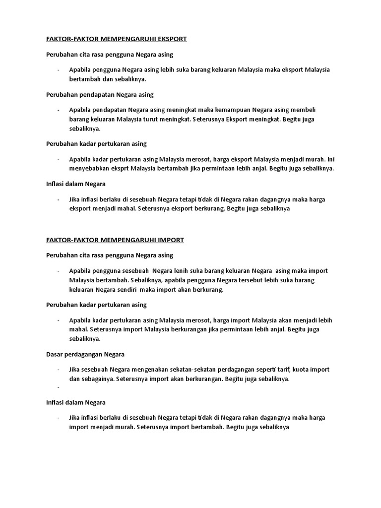 Faktor yang mempengaruhi eksport malaysia. Huraikan faktor politik yang mempengaruhi trend eksport malaysia ingat. Syafrudin budiningharto su fakultas ekonomi jurusan ilmu ekonomi studi pembangunan universitas diponegoro semarang e mail. Apakah yang dimaksudkan dengan ekonomi empat sektor. Faktor ketiga yang mempengaruhi kadar pertukaran asing adalah permintaan negara asing terhadap eksport malaysia.