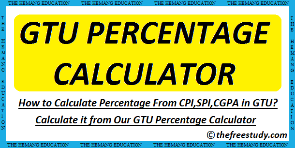 June 20 2014 june 20 2014 technogupshup. Gtu spi calculator is a handy and reliable application designed to calculate your current semester performance in the gujarat technological university gtu india. Gtu spi cpi cgpa calculator about gtu spi calculator gtu spi calculator is a handy and reliable application designed to calculate your current semester performance in the gujarat technological university gtu india. Gtu cpi to percentage converter cpi spi percentage from cgpa gtu percentage cpi cgpa to percentage calculation cgpa calculation according new formula latest gtu grading evaluation system how to calculate percentage from cpi in gtu gtu cpi to percentage calculator gtu cpi to percentage converter percentage calculator from cgpa cumulative grade point average cumulative percentage.