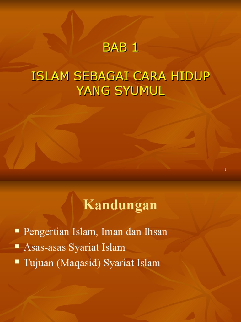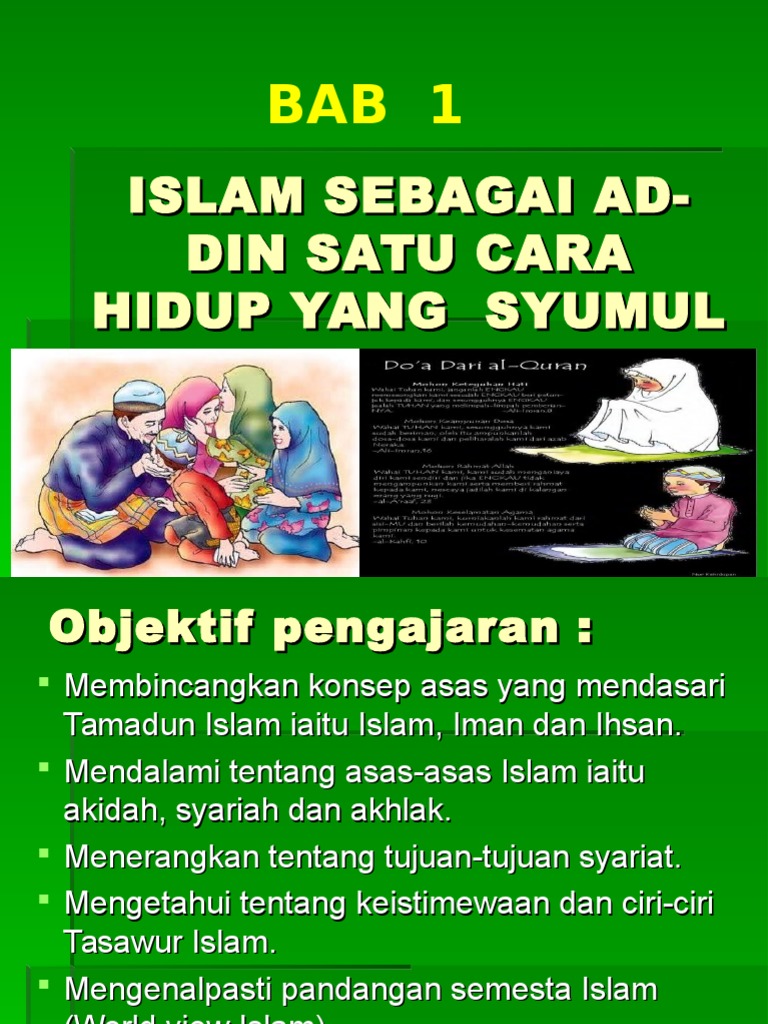Sebagai cara hidup yang lengkap islam juga mengatur penganutnya cara berpakaian iaitu i. Industri perbankan dan keuangan sebagai salah satu motor penggerak roda perekonomian pun diatur dalam islam. Memberi definisi islam iman dan ihsan. Islam merupakan agama yang lengkap atau syumul memberi panduan ke arah kesejahteraan hidup di dunia dan akhirat.