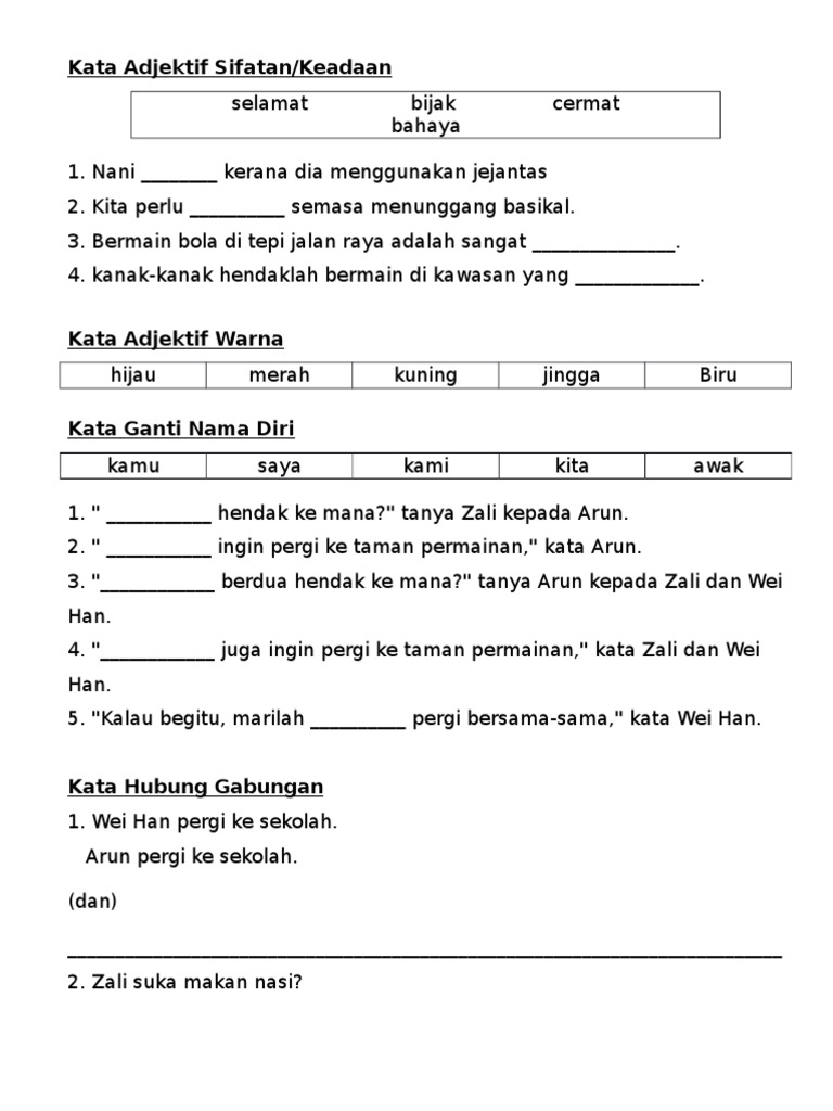 Bahasa melayu tahun 2 tatabahasa kata a. Kata adjektif bentuk a. Baju merah itu kepunyaanku. Kemerdekaan negara itu tercapai hasil daripada satu perundingan meja bulat.