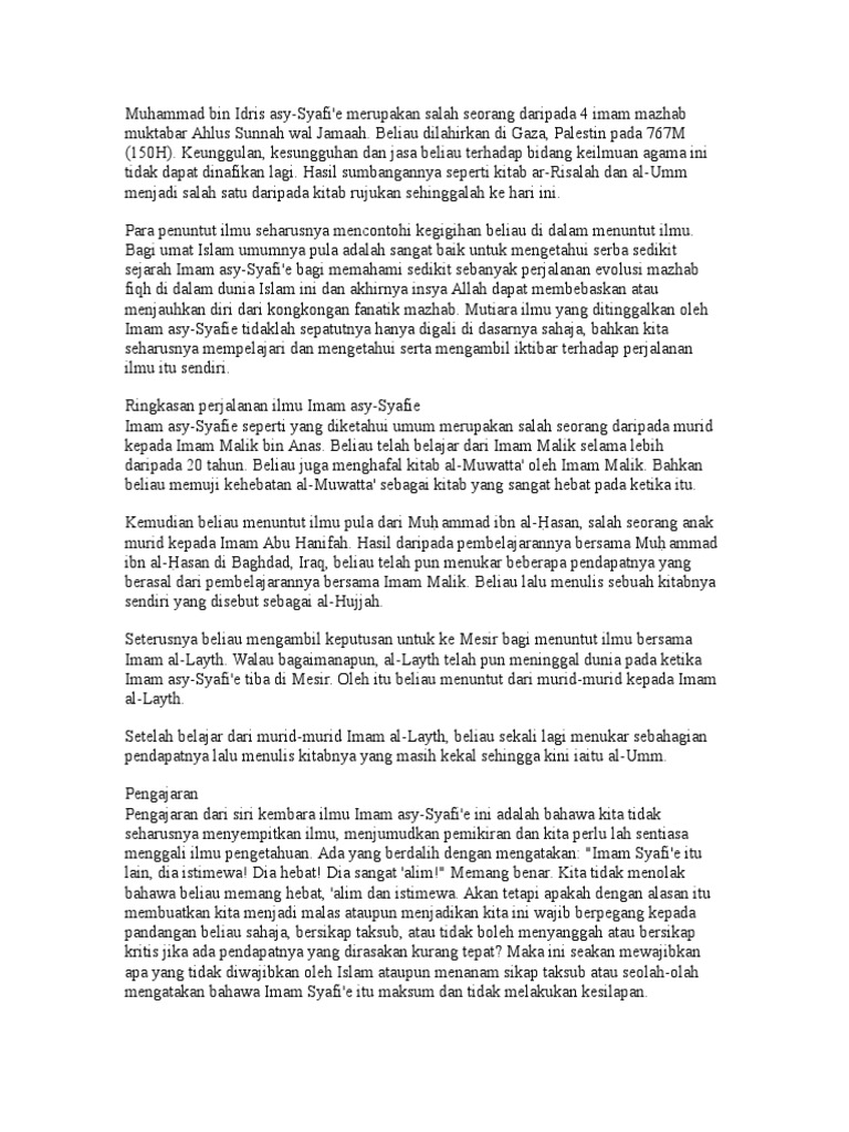 Beliau telah menghafal al quran pada umur 9 tahun. Beliau merupakan seorang yang mencintai ilmu. Marilah kita berlumba lumba menuntut ilmu dengan penuh adabnya dan cuba mencontohi kegigihan imam syafei dalam menuntut ilmu. Share your videos with friends family and the world.