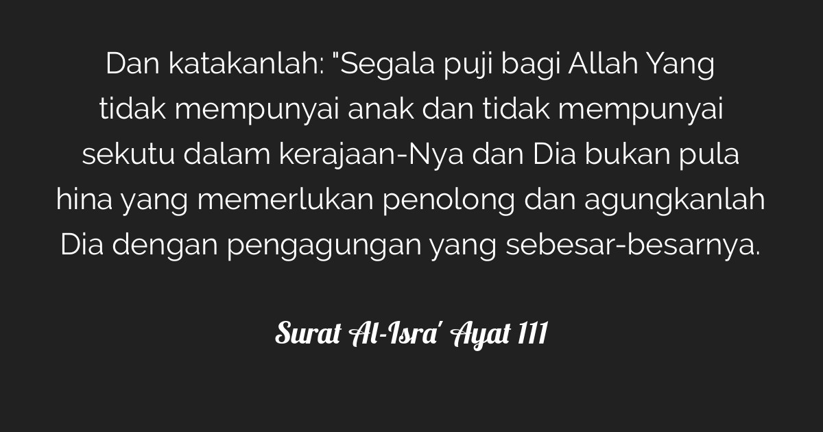 Di masjidil haram di mekah ke masjidil aqsha di baitul maqdis dicantumkan pada ayat pertama dalam surat ini. Selesai tafsir surah al israaâ dengan pertolongan allah dan taufiq nya wal hamdulillahi rabbil â aalamiin. Surat al isra ayat 111. Tadabbur surah al isra tahun 2017 2018lokasi.