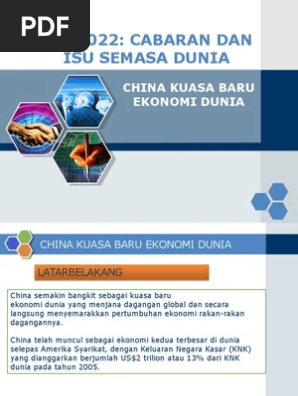 China china bangkit sebagai kuasa baru ekonomi dunia yang menjana dagangan global dan secara langsung menyemarakkan pertumbuhan ekonomi rakan rakan dagangannya china merupakan kuasa ekonomi keempat terbesar di dunia yang dianggarkan bernilai rm48 trilion. Cabaran dan isu semasa dunia isu isu ekonomi dunia semasa 2. Menyampaikan idea mereka demi kemajuan umat islam selaras dengan kemajuan dunia pada waktu itu. Pengaliran perdagangan pelaburan dan kewangan masih tertumpu di kalangan tiga kuasa ekonomi utama iaitu amerika utara eropah dan jepun dan penguasaan mereka dijangka akan berterusan.