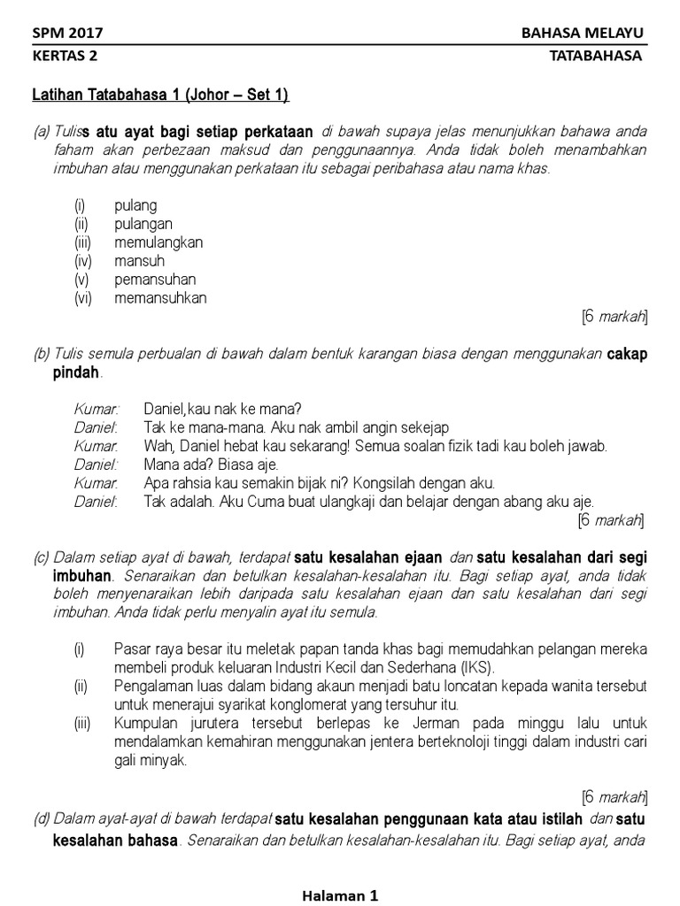 Berikut adalah koleksi soalan tatabahasa spm koleksi daripada soalan spm 2017 dan juga soalan soalan percubaan spm dari negeri negeri seluruh malaysia. Kesalahan ejaan dan kesalahan penggunaan imbuhan spm 2005 dalam setiap ayat di bawah terdapat satu kesalahan ejaan dan satu kesalahan penggunaan imbuhan. Pt3 dan spm 3. Ahad 26 februari 2017.