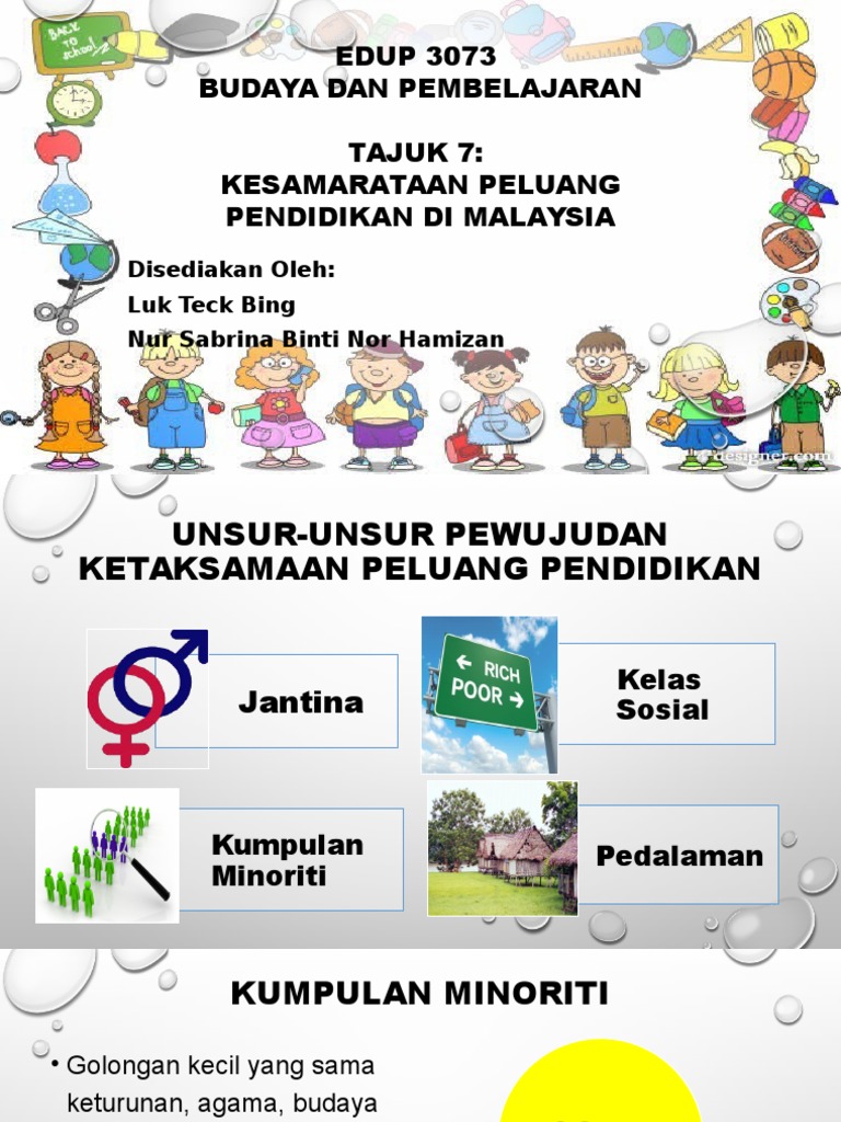 Kesamarataan peluang pendidikan di malaysia. Pedalaman jantina sekolah dan guru memainkan peranan membentuk persekitaran pembelajaran yang mana hak untuk belajar kurikulum. View kesamarataan peluang pendidikan di malaysia pedalaman pptx from cs hci at institut pendidikan guru kampus batu lintang. Kesamarataan peluang pendidikan di malaysia. Doc ketaksamaan peluang pendidikan di malaysia.