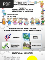 Nor zaihanis binti zulkifli siti nurputeri najihah binti johari nur asyikin binti ibrahim azizi kesamarataan peluang pendidikan jantina. Perkara tersebut dapat dicapai menerusi interaksi dalam kalangan murid yang terdiri daripada pelbagai latar belakang. Kementerian berhasrat memastikan kadar akses sejagat dalam kalangan kanak kanak dari peringkat prasekolah hingga ke peringkat menengah atas tingkatan 5 menjelang 2020. Tidak dapat dinafikan konsep diskriminasi yang ditakrifkan sebagai pandangan pemikiran dan kepercayaan negatif oleh seseorang atau sekelompok etnik terhadap anggota atau kelompok etnik lain masih menebal dalam kalangan masyarakat malaysia hari ini.
