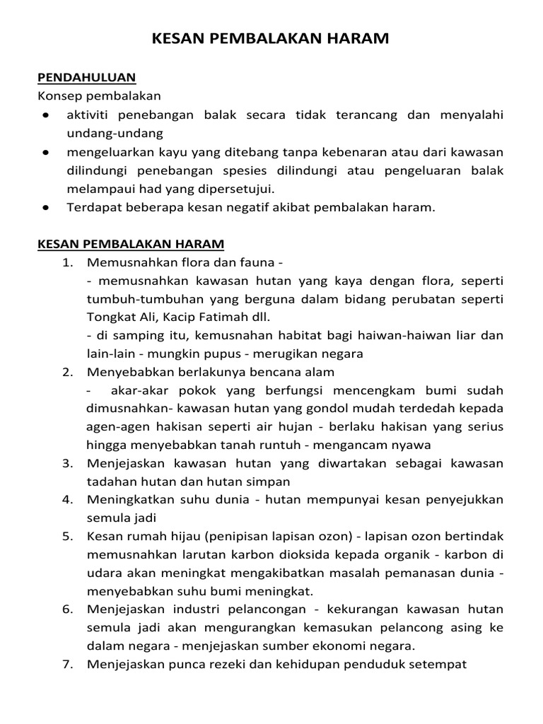 Kesan Pembalakan Haram Terhadap Alam Sekitar