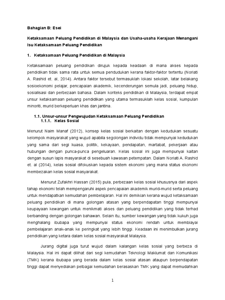 Satu kajian kes isi rumah melayu miskin di jajahan bachok kelantan siti masayu rosliah binti abdul rashid universiti sains malaysia 2008. Ketaksamaan peluang pendidikan kelas sosial 1. Ketaksamaan peluang pendidikan download report. Faktor yang mempengaruhi ketaksamaan peluang pendidikan di malaysia kedudukan jauh daripada bandar lokasi kekurangan dari segi infrastruktur kepercayaan masyarakat gender ketidaksamarataan sosio ekonomi kurang kemudahan kepada pelajar berkeperluan khas di sesetengah tempat.