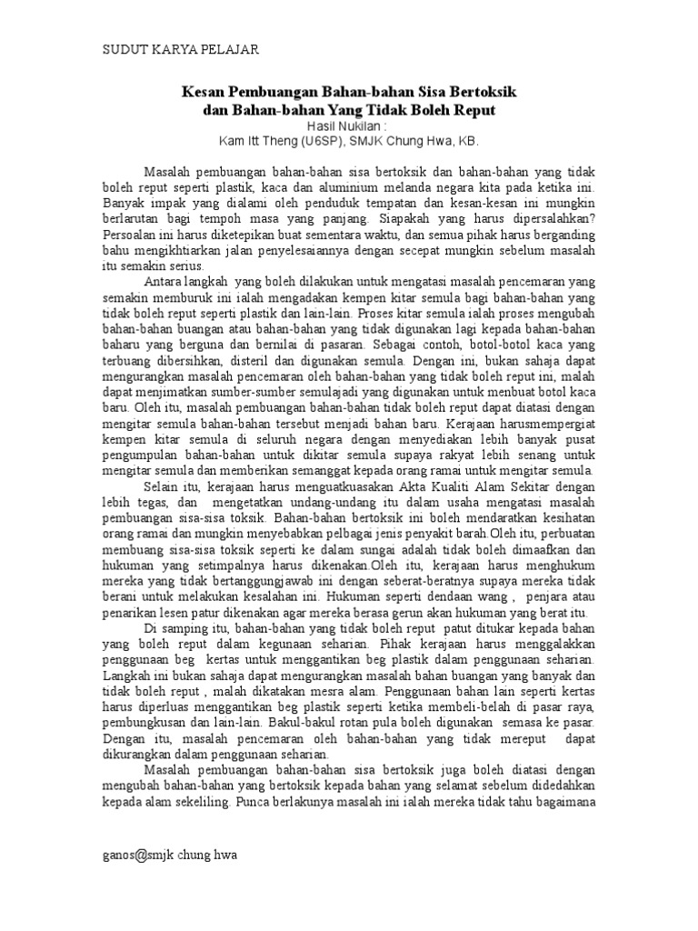 Karangan bahagian a gambar rajah di bawah menunjukkan sebahagian daripada cara menyayangi sekolah. Antara langkah yang boleh dilakukan untuk mengatasi masalah pembuangan sampah yang semakin buruk ini ialah meminimumkan penghasilan sampah sarap. Pembuangan sisa jualan makanan di premis perniagaan apabila kedai kedai jalanan memakai membuang plastik merata rata plastik serbaguna penduduk 2. Kilang kilang tersebut tidak memikirkan kesan yang akan dialami jika membuang sisa sisa toksid di merata.