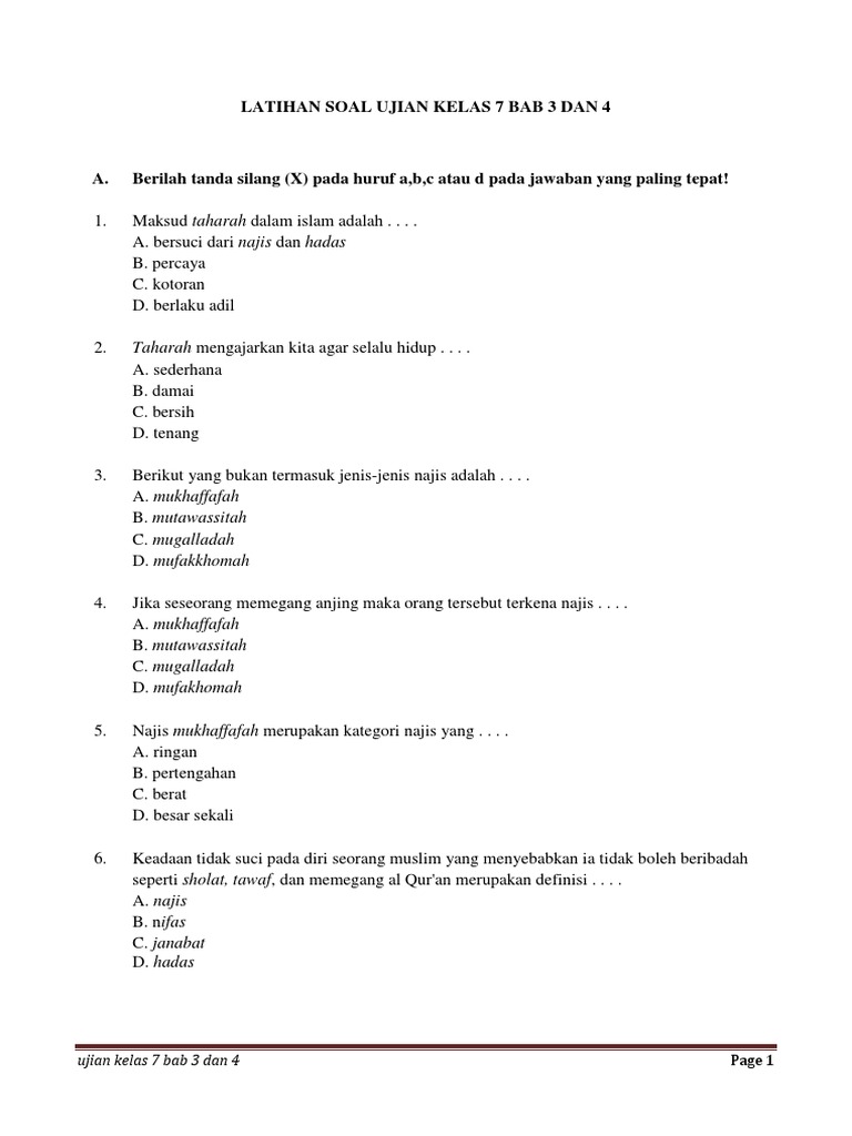 Latihan Jenis Jenis Najis