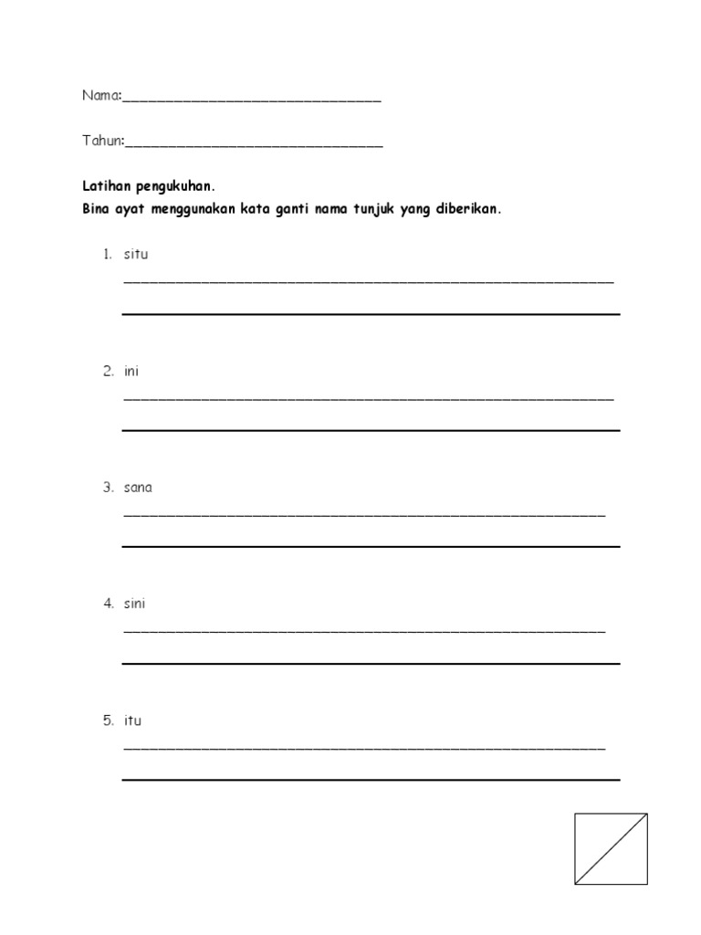 Latihan kata ganti nama tunjuk. Bentuk kata ganti tunjuk antara lain. Ini menunjukkan sesuatu yang dekat. Terdapat dua kata ganti nama tunjuk iaitu itu dan ini. Kongsi ke twitter kongsi ke facebook.