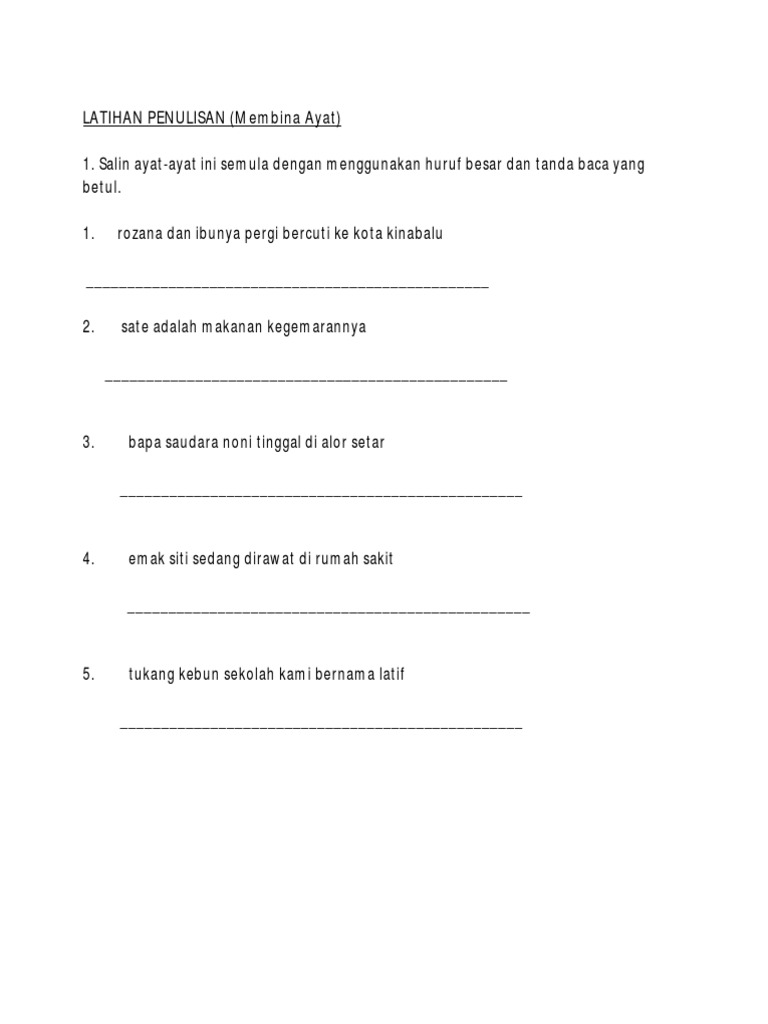 Siapakah nama guru kelas azrul pegawai pelajaran daerah. Pegawai pelajaran daerah telah merasmikan sukan sekolah 3. Tulis semula ayat dengan menggunakan huruf besar dan tanda baca yang betul. Letakkan tanda baca yang betul pada ruangan yang disediakan dalam ayat ayat di bawah.