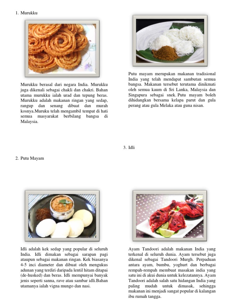 6 makanan tradisi di malaysia untuk pelbagai kaum duration. Makanan tradisional ini sering dimakan oleh rakyat malaysia terutamanya kaum india tosai boleh didapati di mana mana gerai atau kedai mamak dan juga di restoran india. Pen yatuan pelbagai hidangan ini telah menjadi salah satu faktor untuk menarik pelancong asing datang ke malaysia. Terdapat pelbagai makanan tradisional mengikut kaum di malaysia.