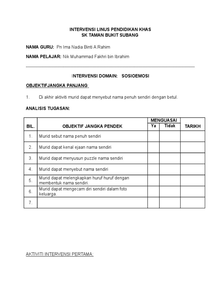 Maksud Intervensi Dalam Pendidikan Khas