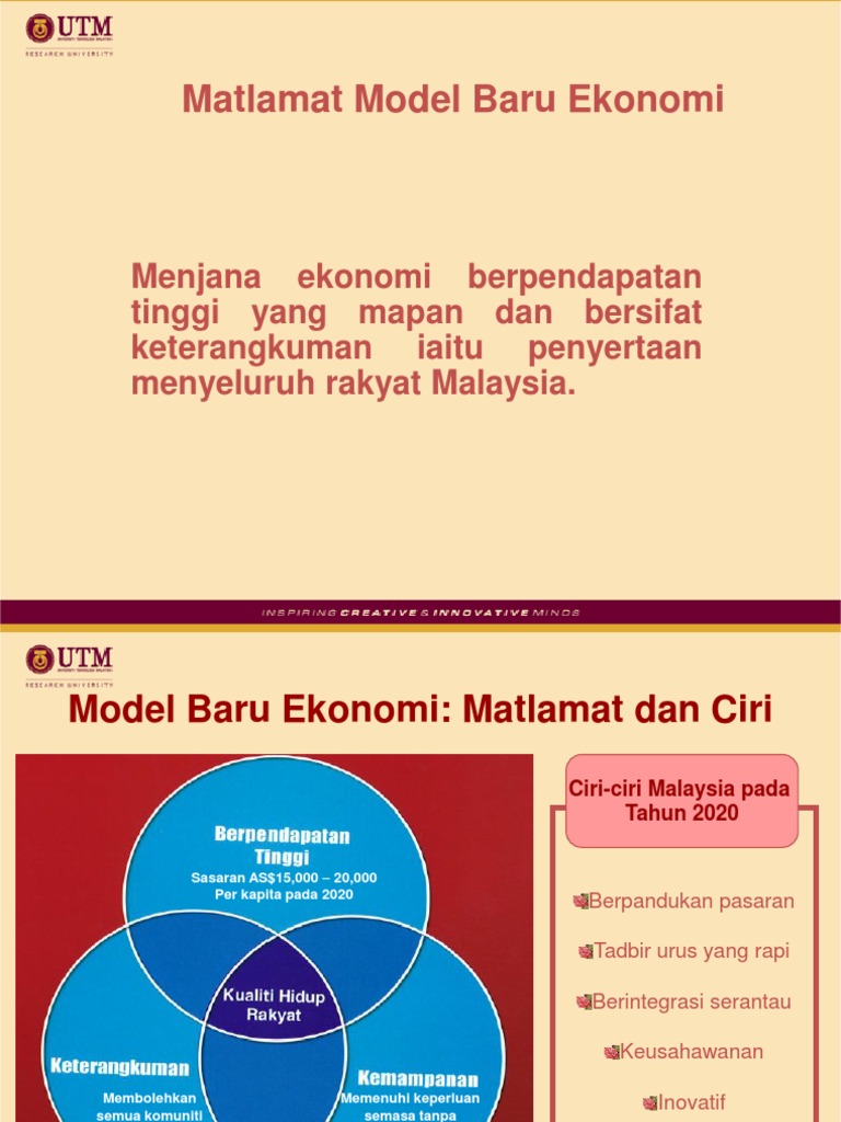 Model ekonomi baru meb disediakan oleh pn. Sementara fasa 2 selepas pembentangan rancangan malaysia ke 10 rmk 10. Ia terbahagi kepada 2 fasa. Matlamat utama model ekonomi baru meb adalah menjadikan malaysia negara maju berpendapatan tinggi dengan ciri keterangkuman dan kebolehmampanan menjelang 2020.