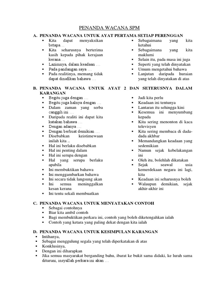 Penanda wacana karangan bahasa inggeris spm. Penanda wacana untuk ayat terakhir pendahuluan karangan oleh itu kebaikan dan keburukan yang mewarnai fokus perbincangan akan dihuraikan dengan terperinci demi kebaikan bersama. Selain soalan soalan percubaan spm negeri kami juga mengumpul soalan soalan percubaan spm dari sbp dan mrsm dan juga soalan. Message prev topic next topic har zx newbie joined. 33 contoh karangan dalam bahasa inggris terbaik artinya me.