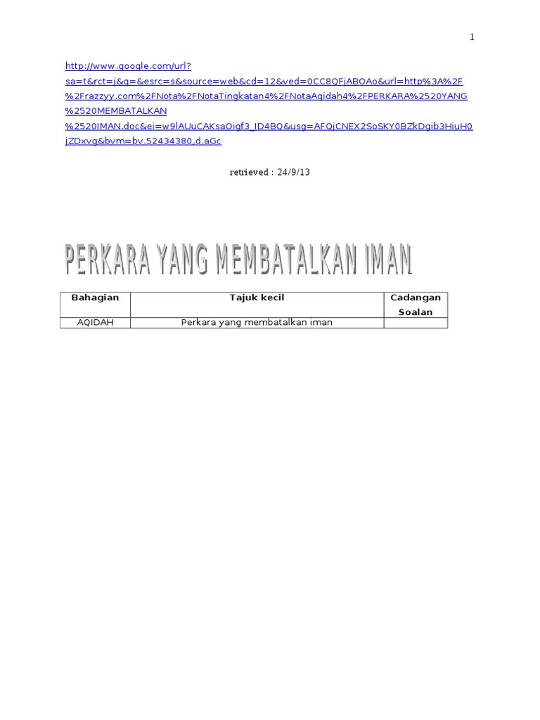 Perkara membatalkan iman dan cara mengatasinya 1. Perkara yang membatalkan aqidah pdf download phillips science of dental materials pdf 12 download c5cfac679b 2. Menyekutukan allah dengan sesuatu pada zat sifat dan afalnya. Berlaku melalui pemujaan penyembahan permintaan perlindungan dan kepatuhan kepada sesuatu selain allah.