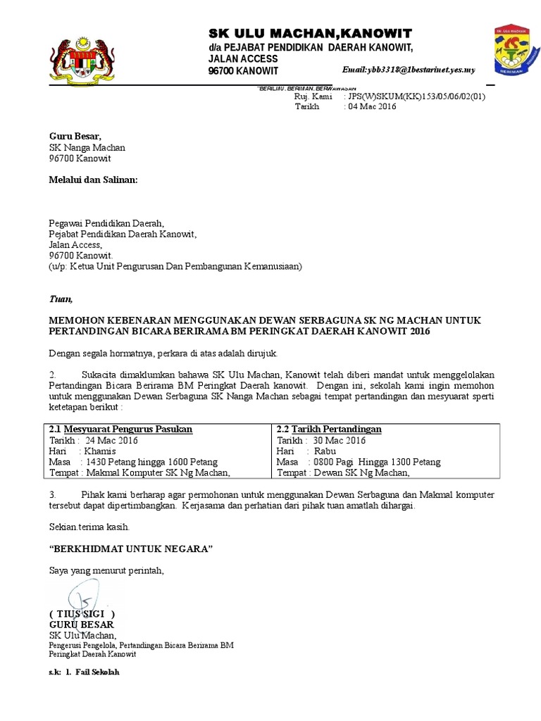Permohonan Contoh Surat Memohon Kebenaran Menggunakan Tempat