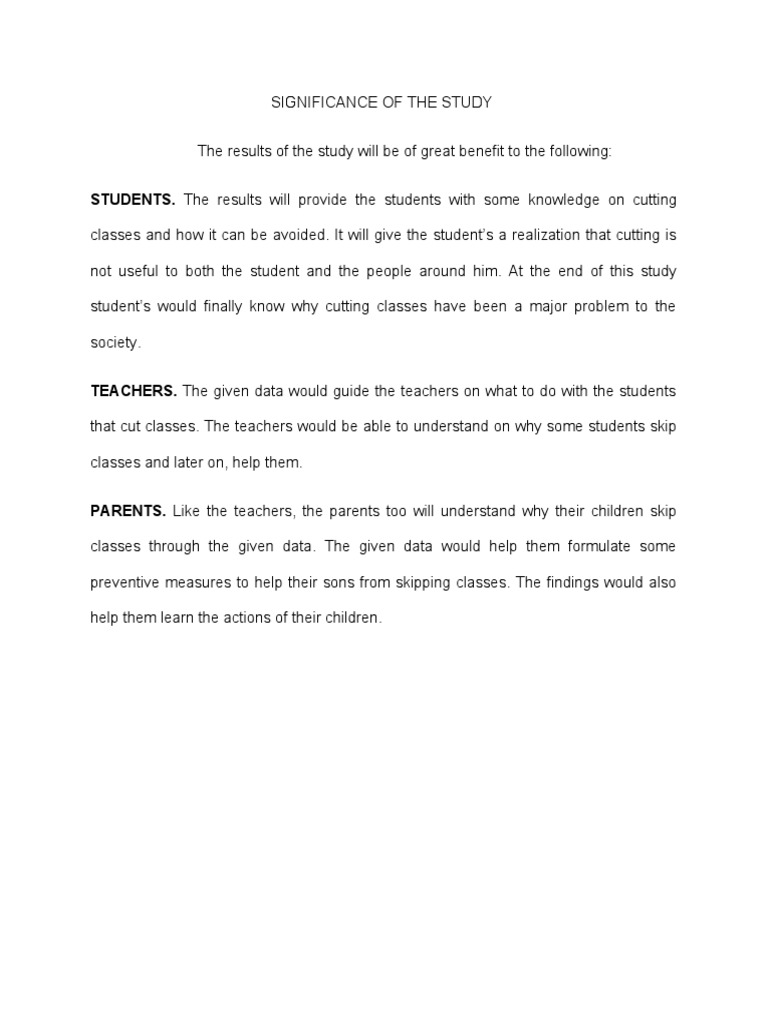 Significance of study in research proposal example. You will grasp enough knowledge about how the paper should be formatted without making any flimsy errors and how many pages and words should be in the paper like 1000 word essay. In simple terms the significance of the study is basically the importance of your research. It provides details to the reader on how the study will contribute such as what the study will contribute and who will benefit from it. In writing the introduction of a thesis a section is devoted to the significance of the study.