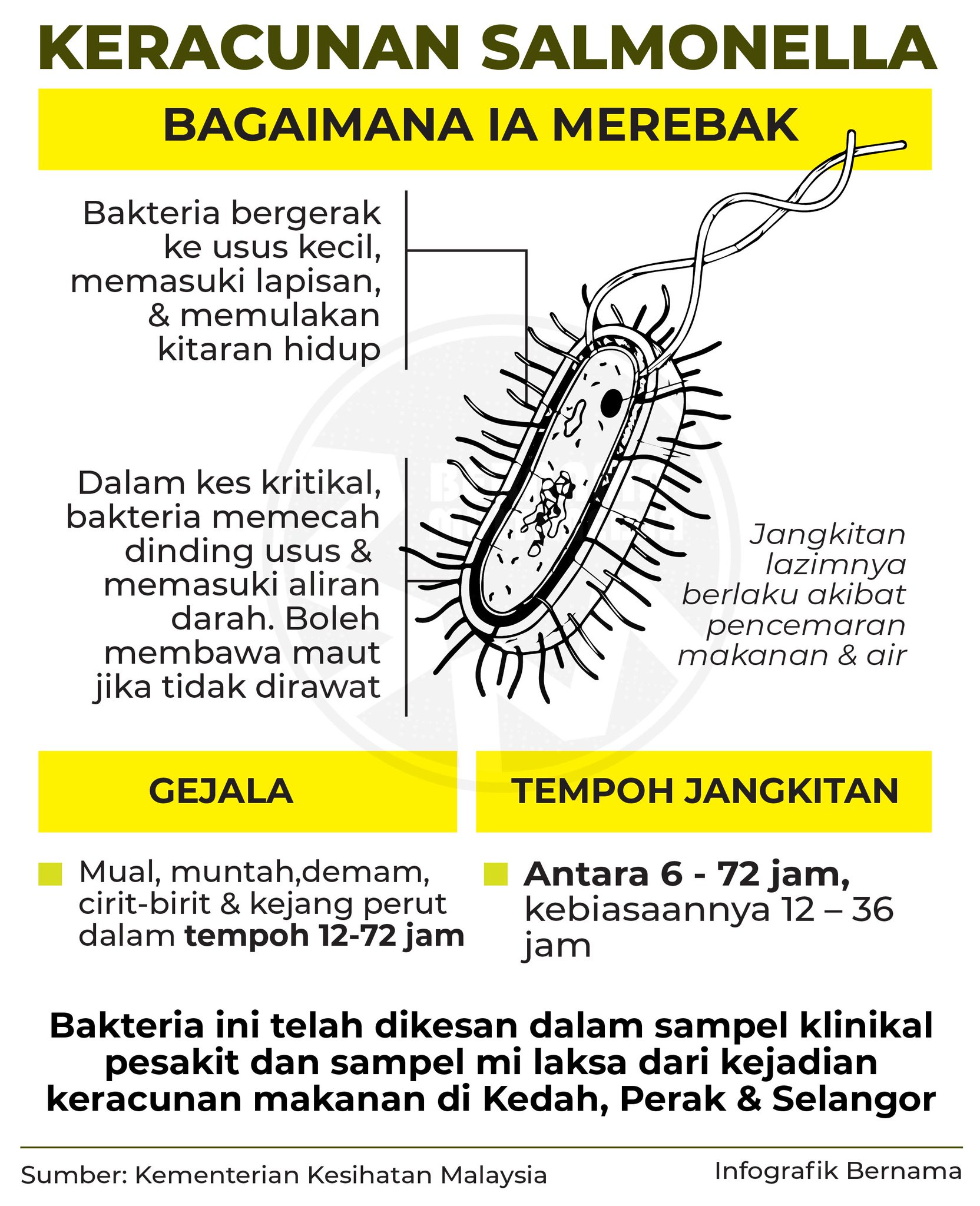 Statistik keracunan makanan di malaysia 2018. Dari januari hingga ogos tahun ini tiga belas kes keracunan makanan melibatkan 801 orang termasuk satu kematian telah dilaporkan. Kebiasaanya ia berpunca dari kaedah amalan pengendali makanan yang menyediakan makanan terlalu awal serta pembeli yang menyimpan makanan untuk makan lewat malam atau sahur tanpa penyimpanan yang betul pula menggalakkan mikroorganisma yang ada dalam. Buktinya pada mei tahun lalu kementerian kesihatan mendedahkan kes keracunan makanan menunjukkan peningkatan 23 69 peratus iaitu 401 kes kepada 496 berbanding tahun sebelumnya. Setakat ini kementerian kesihatan malaysia kkm masih menunggu keputusan daripada sampel makanan yang telah dihantar ke makmal untuk dianalisa.