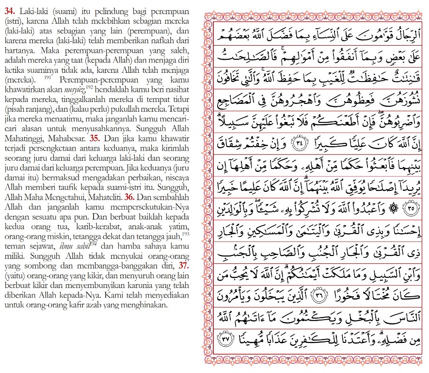 Surah an nisa ayat 34 37. Ayat yang lalu ditutup dengan ungkapan ketidaksenangan allah kepada orang orang yang sombong dan membanggakan diri. Surat an nisa ayat 34. Allah lebihkan satu golongan terhadap golongan lain kerana sifat sifat tertentu. Although it is difficult to determine the exact dates of their revelations it is possible to assign to them a fairly correct period with the help of the commandments and the events mentioned therein.